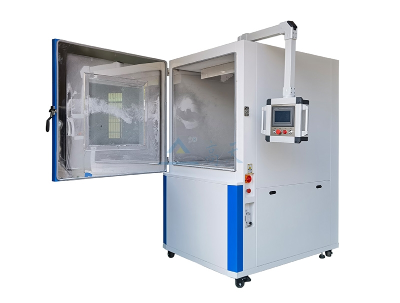 不鏽鋼內膽,外殼不鏽鋼,台灣產數顯溫控儀表控製。除符合GB4208-93標準中的圖2規定以外,並設有加熱器和控溫裝置。不鏽鋼內膽和外殼之間加設保溫層,青青草在线观看视频大門附觀察窗,大門下部為電氣控製麵積,模擬砂塵的滑石粉置於青青草在线观看视频下部料鬥。利用循環風機和自動震擊器將滑石粉通過75微米方孔的網吹入工作室上部,促使試驗空間形成高密度塵霧狀,對試品進行試驗。